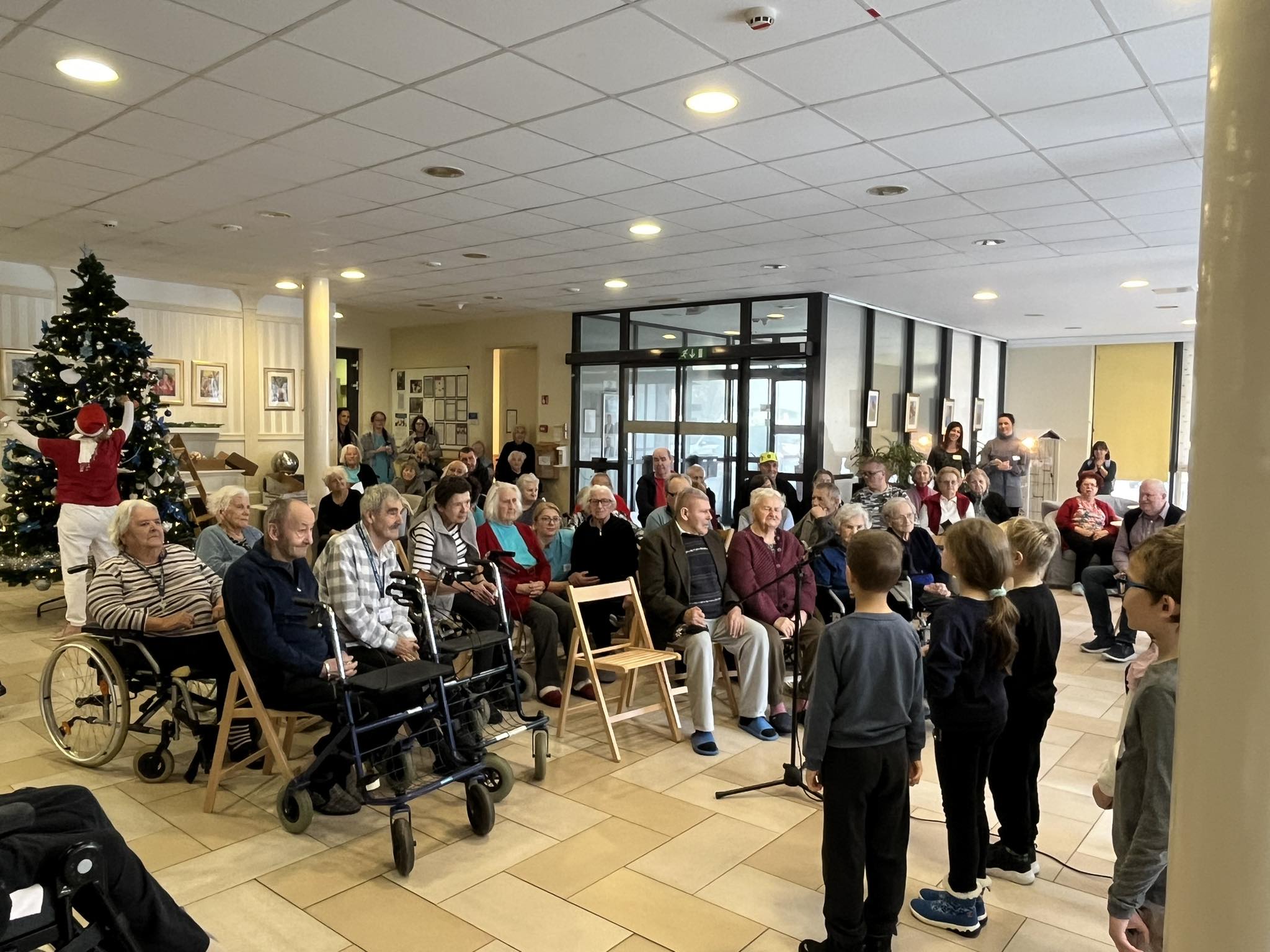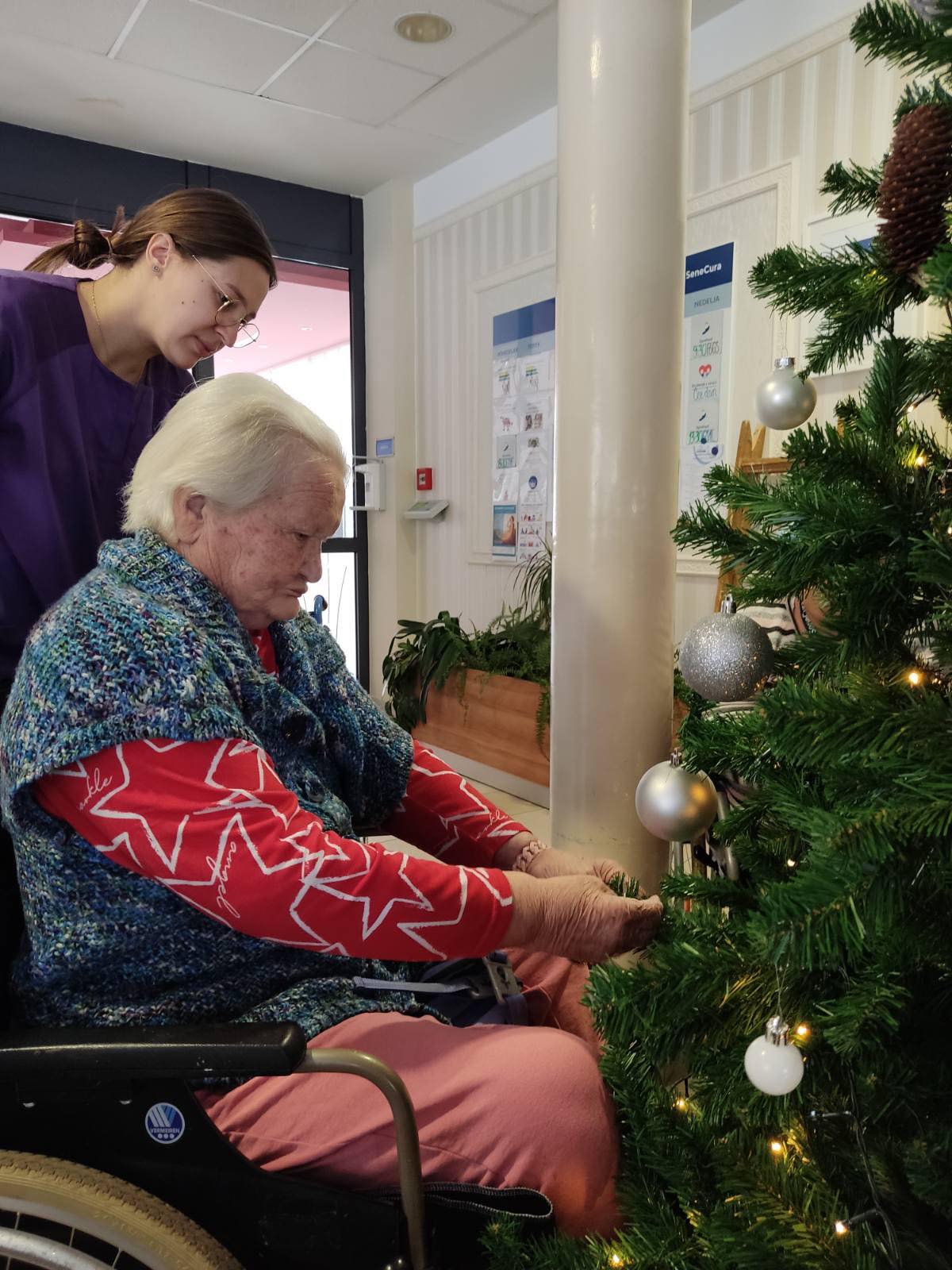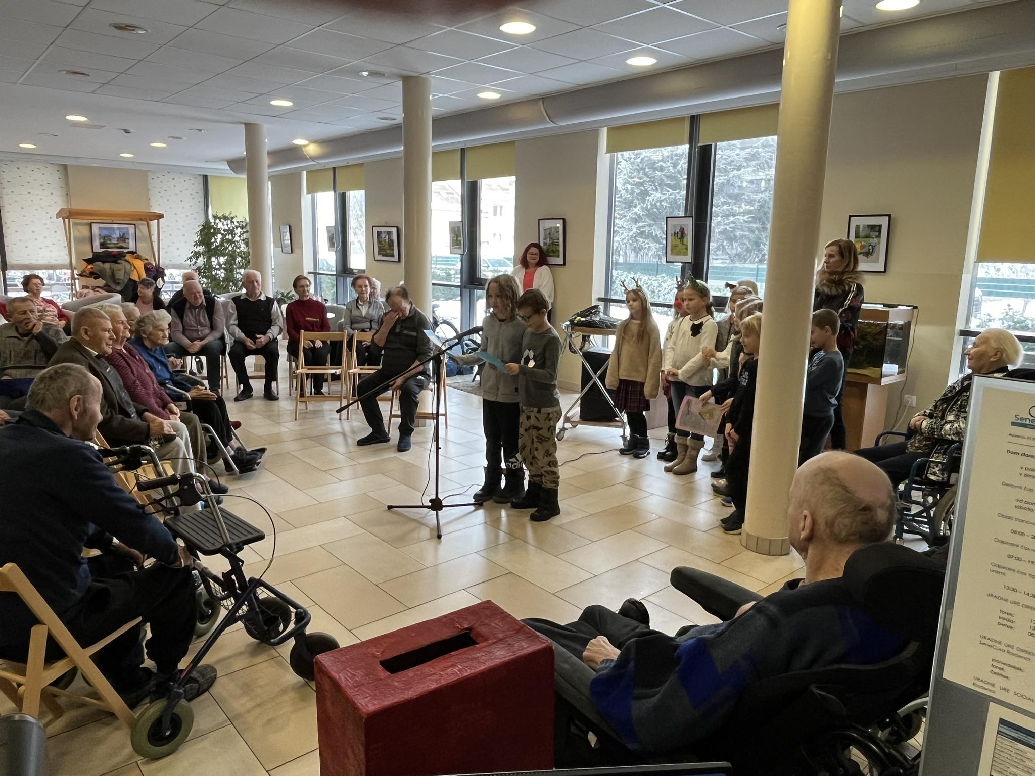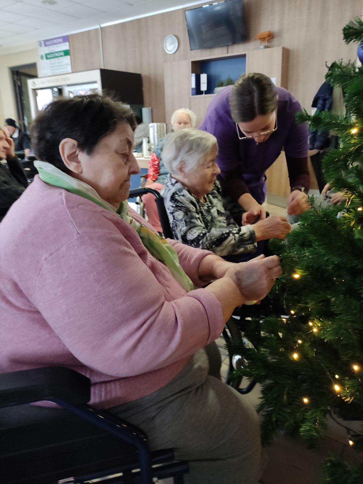 V petek, 08.12.2023 smo v našem domu imeli poseben obisk. Najprej nas je obiskala ga. Božiček in nato še otroci iz OŠ Kajetana Koviča Radenci. Otroci so nam s petjem popestrili dan. Po nastopu je sledila okrasitev smreke, kjer so s skupnimi močmi sodelovali otroci, naši stanovalci in navsezadnje tudi ga. Božiček.