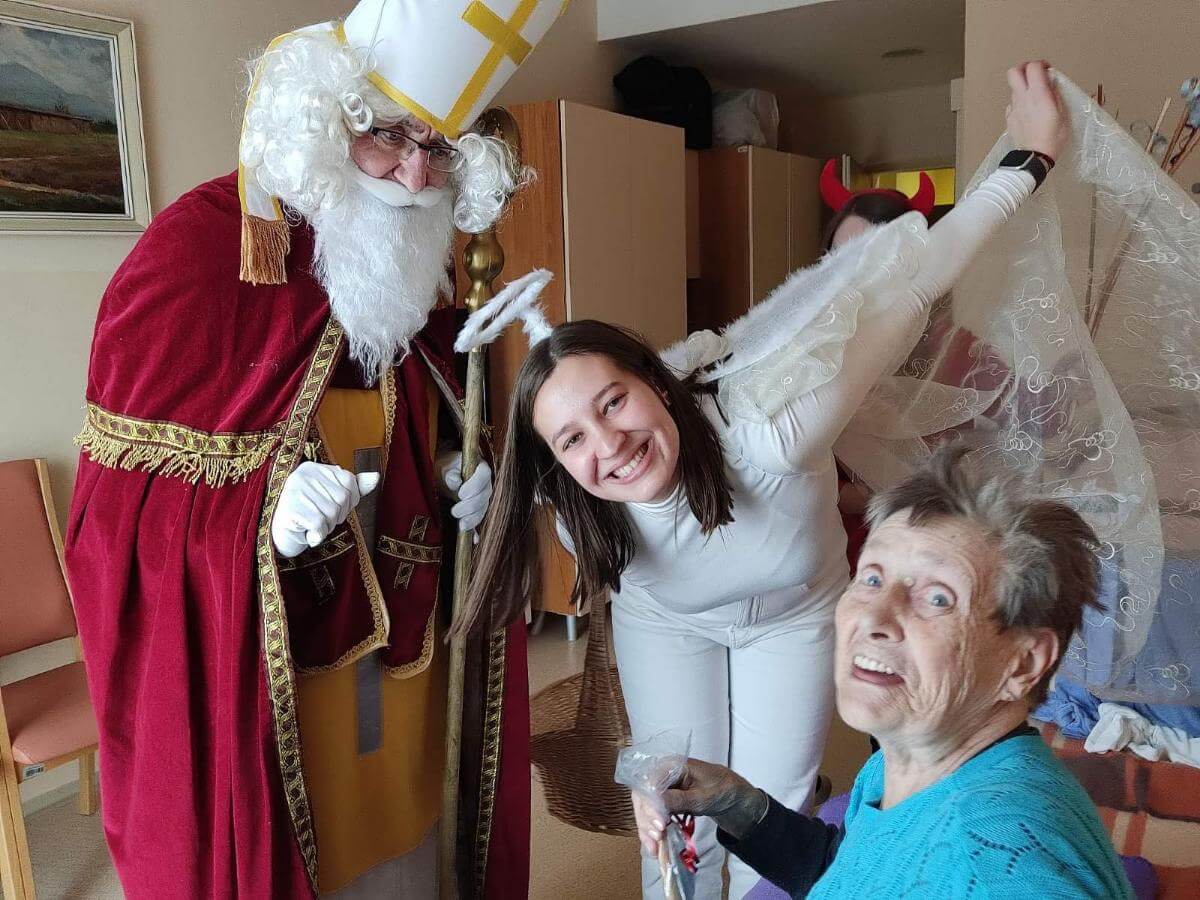 Miklavž, kakor pri nas navadno imenujemo svetega Nikolaja, je gotovo eden najbolj priljubljenih svetnikov. Veselimo se ga vsi. V naš dom je prispel Sv. Miklavž v spremstvu dveh parkljev in angela. Obiskal je vse naše stanovalce in jih razveselil, pridne z medenjaki in poredne z šibo.