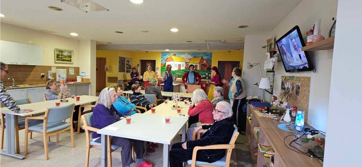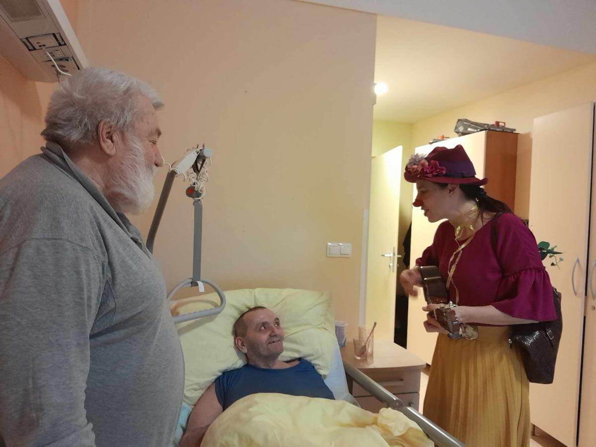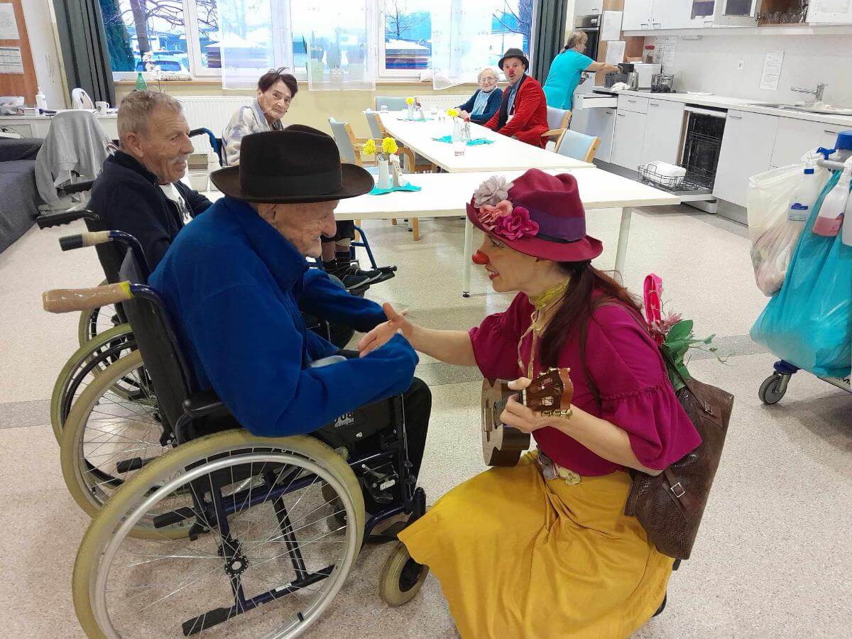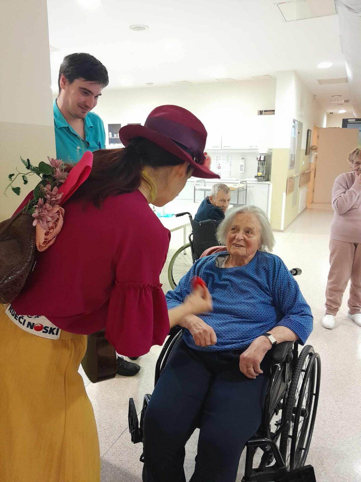 Na turoben, deževen dan so nas obiskali Rdeči noski. S svojimi norčijami in smehom so našim stanovalcem polepšali dan. Ni potrebno veliko, le nasmeh in stisk tople dlani, da se pričara nasmešek na obraz.