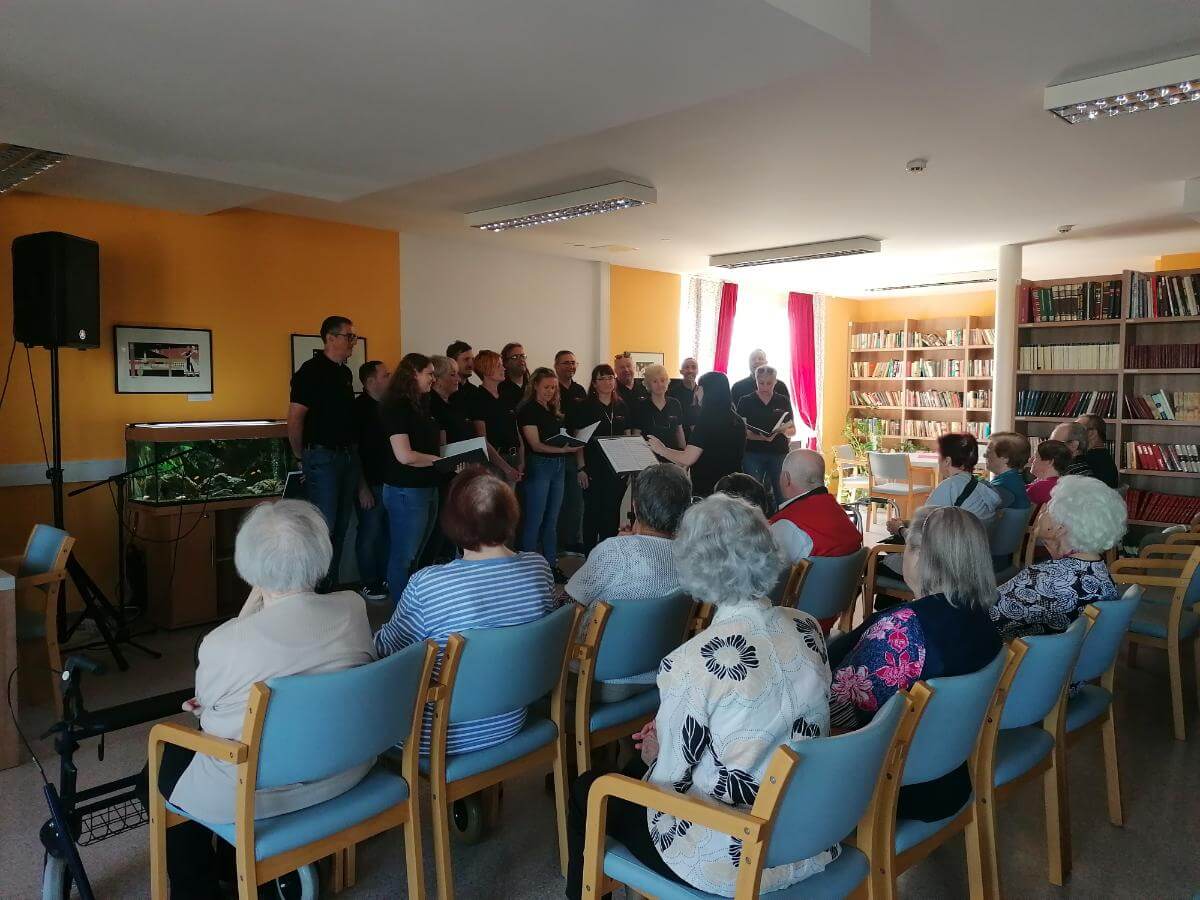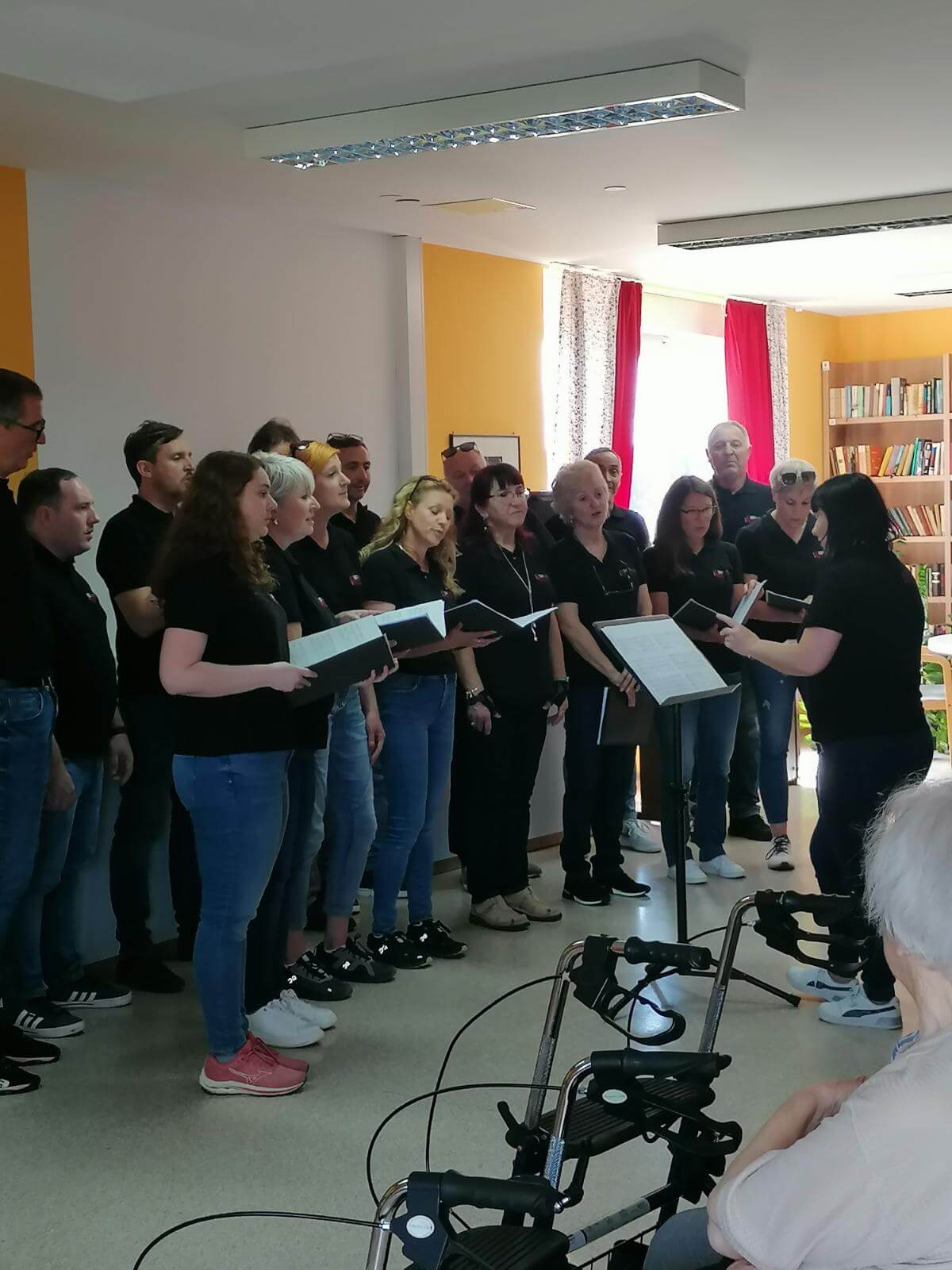 Pesem in družino nosimo v srcu. S pomočjo pevskega zbora in našemu stanovalcu izpolnili srčno željo, da bi se spet srečal s svojimi sorodniki. In tako smo ubili dve muhi na en mah izpolnitev srčne želje in glasbeni dogodek. Njihove pesmi so polepšale dan marsikateremu stanovalcu. Člani MePZ Šmarno ob Paki so nas obiskali in prepevali slovenske pesmi ob katerih je zaigralo srce in še en dokaz kako malo je potrebno za našo srečo.