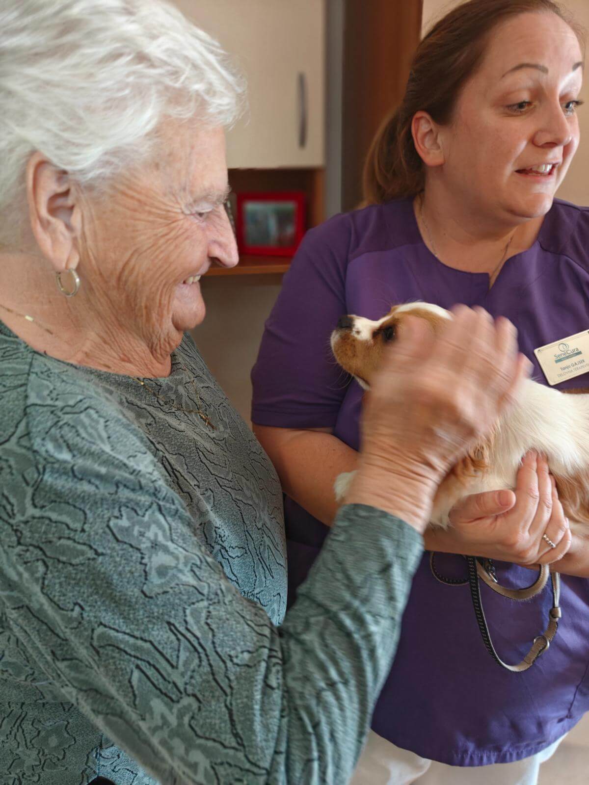 Zaposleni v naših domovih imamo edinstveno možnost, da lahko v službo pripeljemo svoje hišne ljubljenčke. Ta teden nas je obiskala mlada psička Kana, ki je z svojo igrivostjo očarala srca naših stanovalcev in zaposlenih.