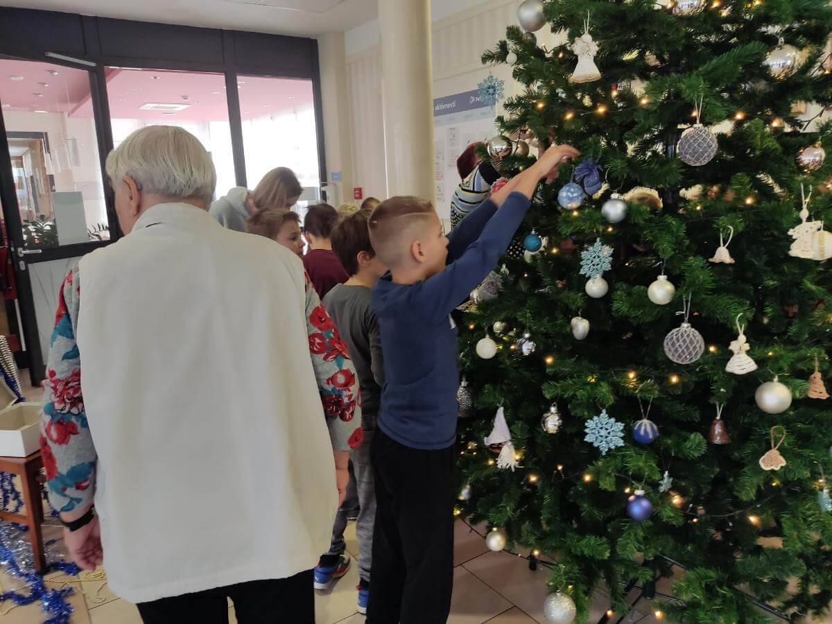 Začel se je veseli december in s stanovalci smo okrasili našo največjo jelko. Ob tej priložnosti so nas obiskali osnovnošolci z OŠ Radenci, da smo se skupaj malo poveselili in zaplesali.
