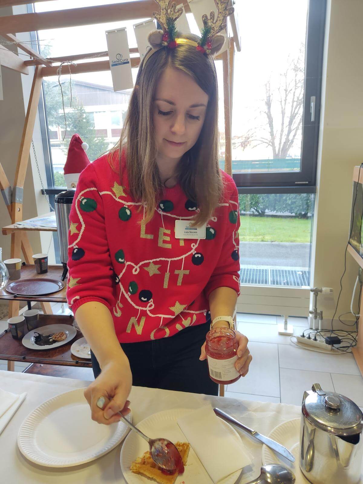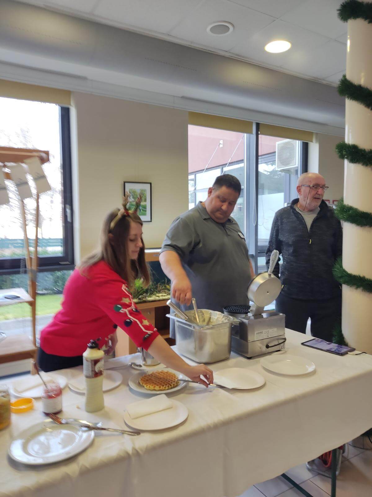 Ker se naši stanovalci zelo radi posladkajo smo v avli pekli vaflje, ki so si jih še izboljšali z marmelado ali čokolado. Pridružil se nam je tudi naš glavni kuhar, česar smo se vsi razveselili.