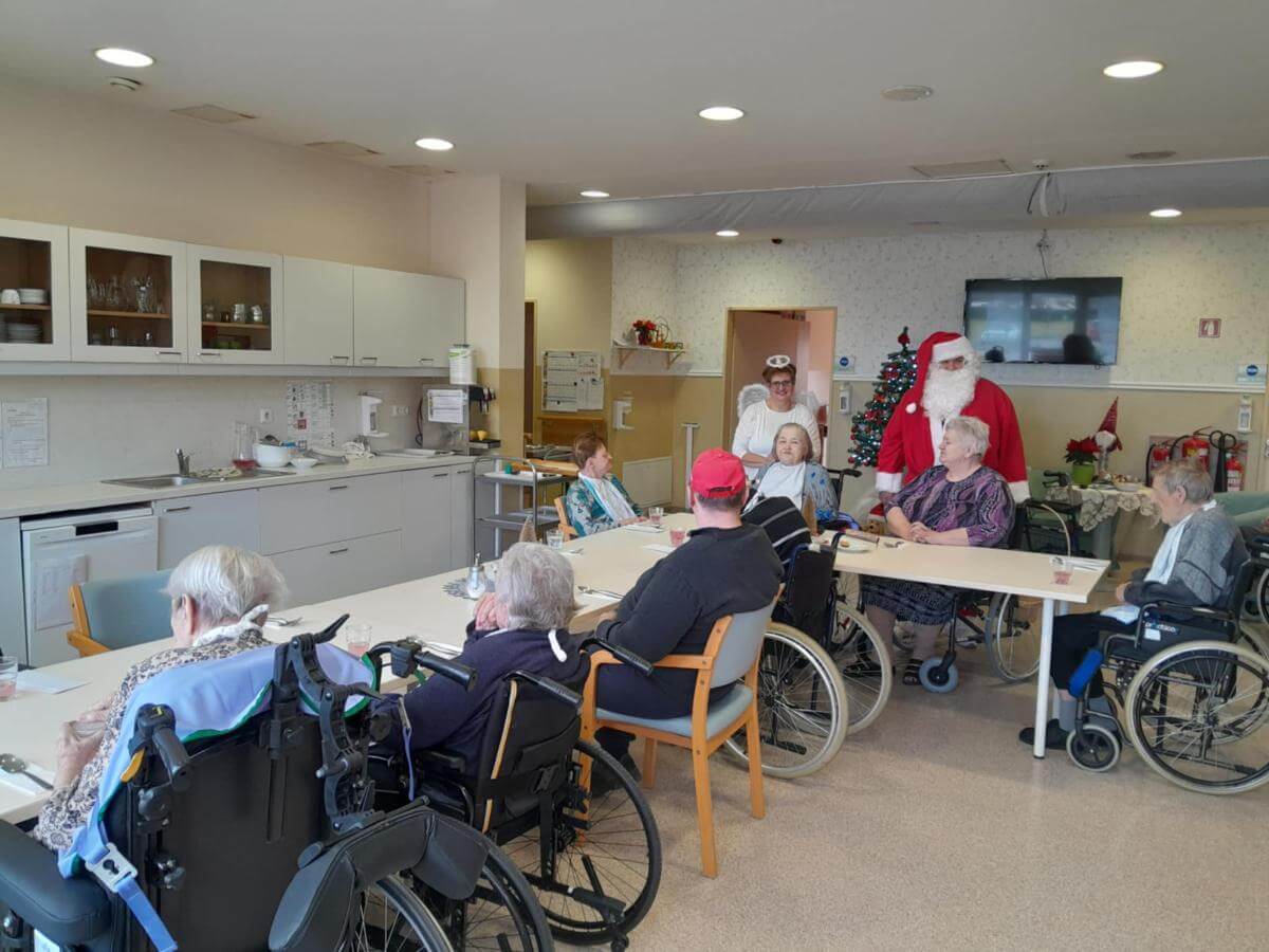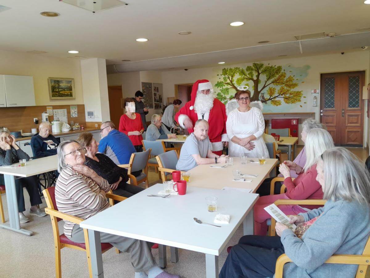 Mesec december je poln prazničnega vzdušja in obiska dobrih mož. Ta teden so naše stanovalci imeli prav poseben obisk. Obiskala sta jih Božiček z angelčkom in Dedek Mraz s svojim palčkom. S svojo dobroto in prijaznostjo sta risala nasmeh na obraz in nas spomnila, da kako malo je potrebno da nekoga osrečimo. Nasmeh, objem in ščepec prijaznosti lahko nekomu polepša dan.