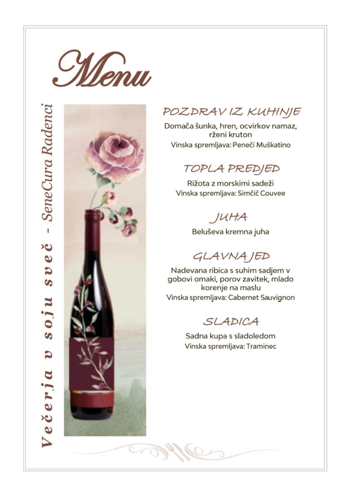 Za naše stanovalce in njihove najbližje smo pripravili večerjo v soju sveč. V prijetnem ambientu našega Traminčka smo ob dobri družbi preživeli čudovit večer. Seveda sta k temu pripomogla poseben večhodni meni in vinska spremljava. Prijetno in veselo vzdušje ob večerji bo gotovo vsem v trajen in dragocen spomin.