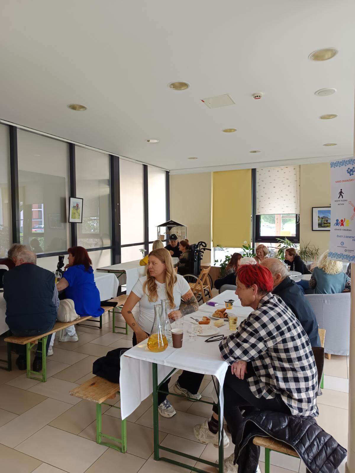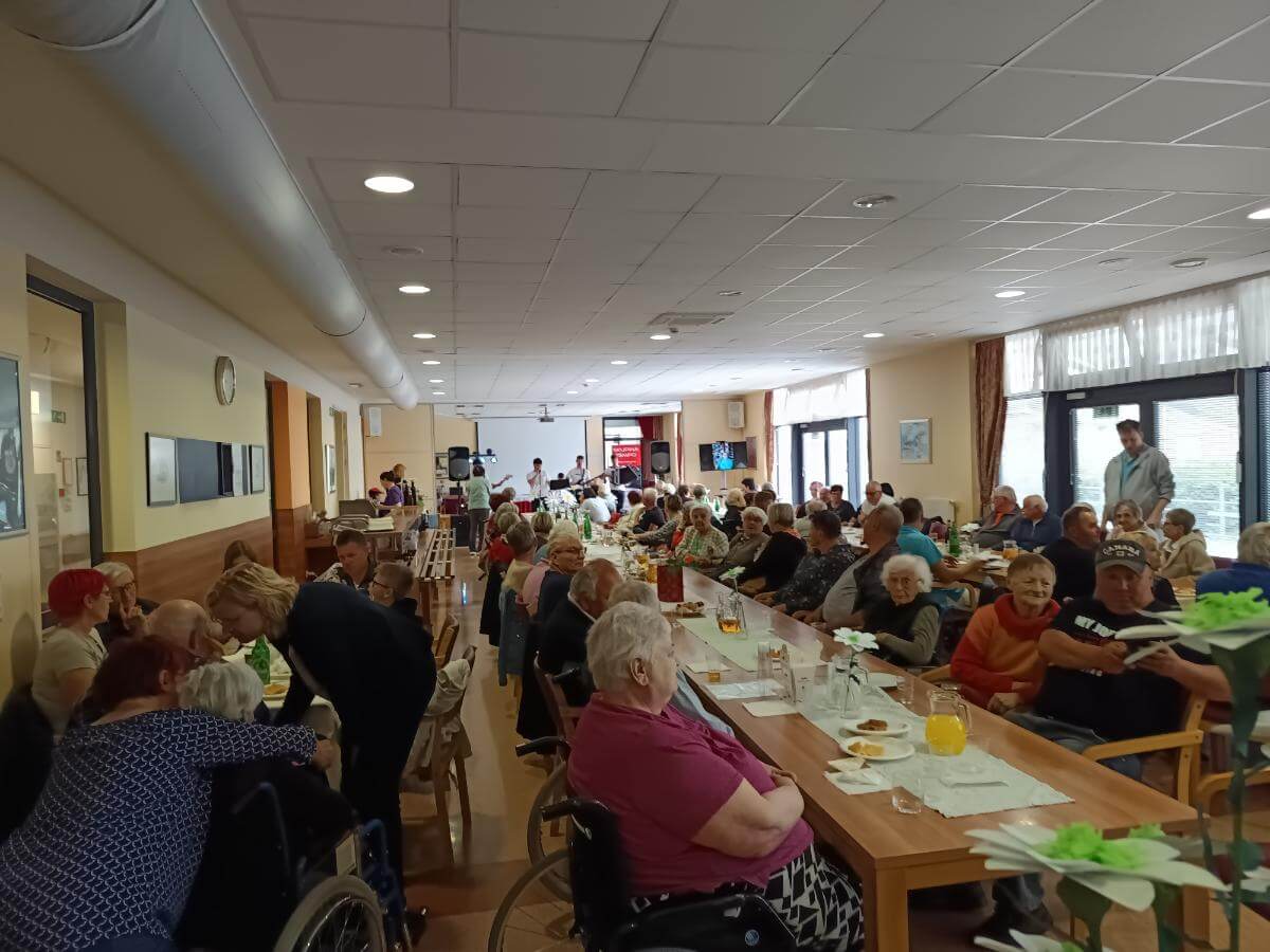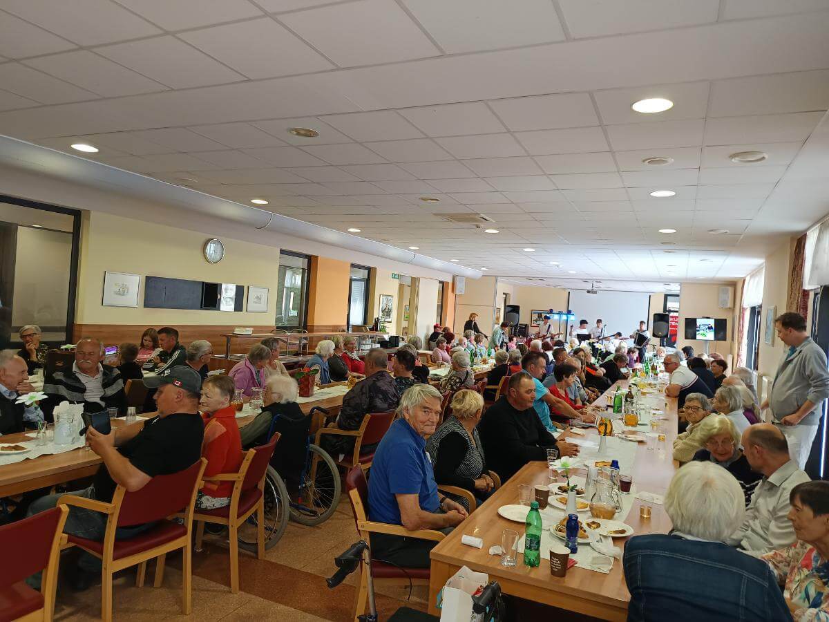 Zaposleni v domu, smo danes organizirali Dan odprtih vrat, skupno druženje stanovalcev, sodelavcev, svojcev, sosedov, prijateljev, kjer smo skupaj obeležili že 17. obletnico našega delovanja.Ob glasbenem programu skupine Tempo smo se posladkali s palačinkami, pecivom in domačim langašom.