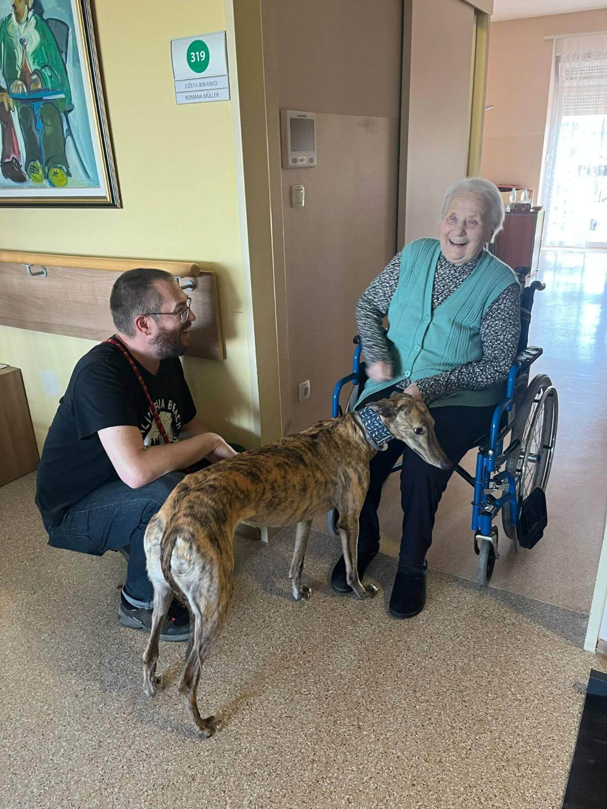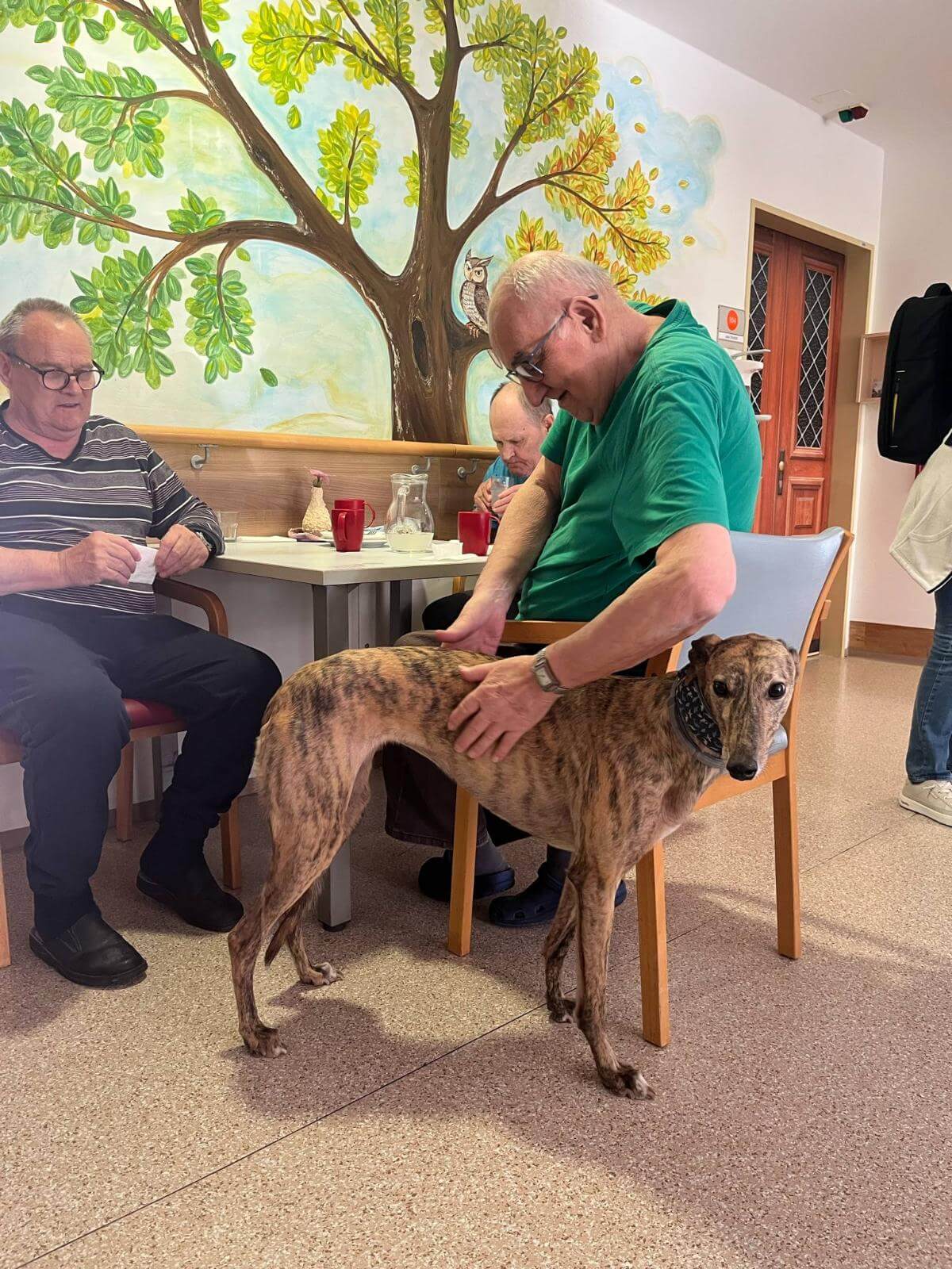 Pes je najboljši človekov prijatelj. Vsaki mesec se veselimo obiska naših prostovoljcev s svojimi pasjimi prijatelji. Ob božanju pasjih prijateljev se naši stanovalci sproščajo in obujajo spomine na svoje kosmate prijatelje, ki so jih imeli v domačem okolju.