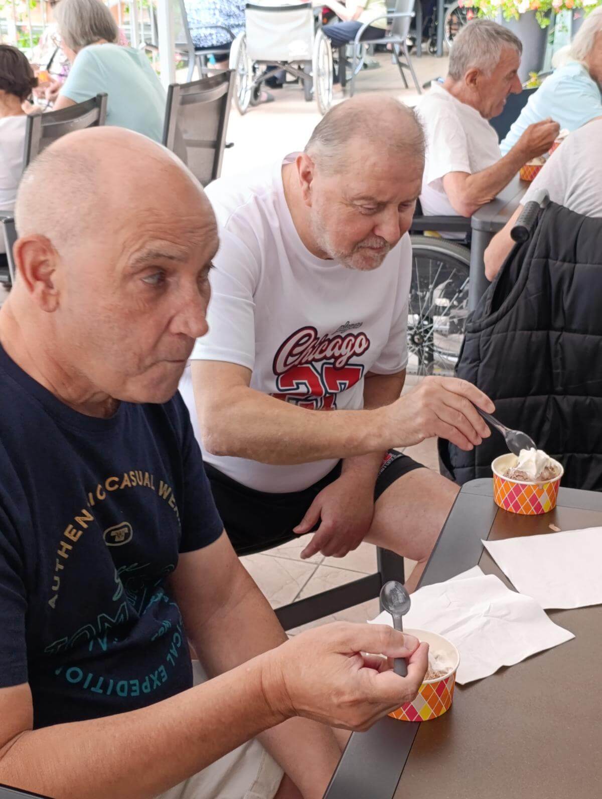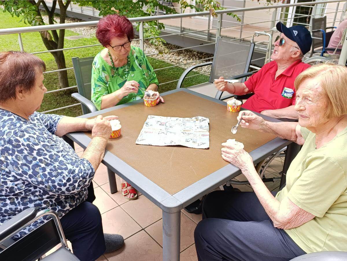 Na soparen in zelo vroč dan smo se osvežili s sladoledom na terasi našega doma.