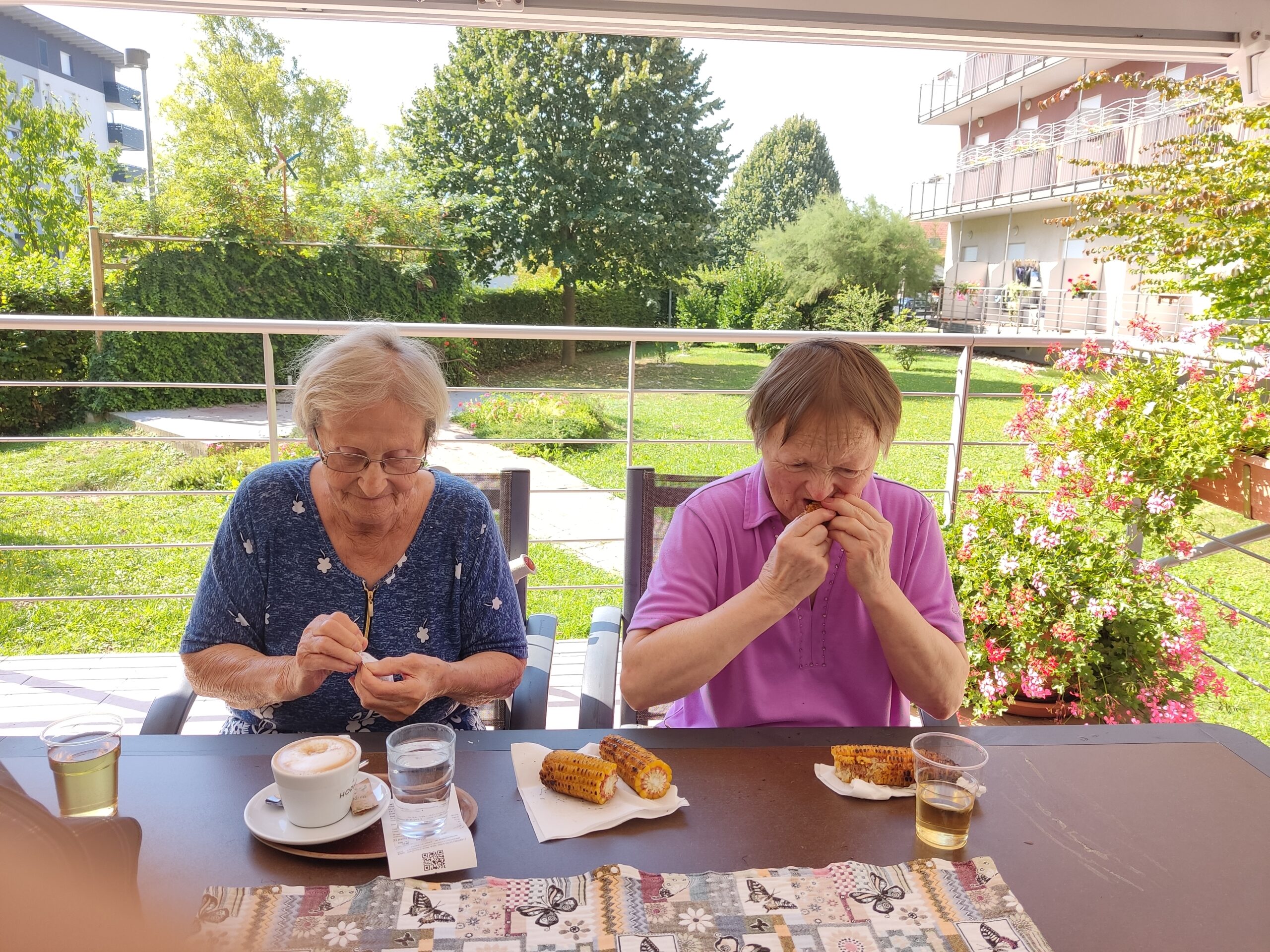 Stanovalci so ob prijetnem druženju uživali v slastnih pečenih zrnih in obujali spomine na mladost.