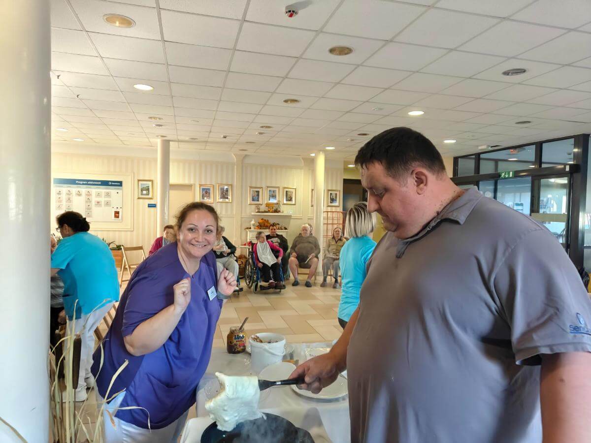 Ta teden smo imeli v domu sladki dopoldan, saj smo skupaj z glavnim kuharjem pekli palačinke za naše stanovalce. Po domu je zadišalo po sveže pečenih palačinkah, smehu in dobri volji.
