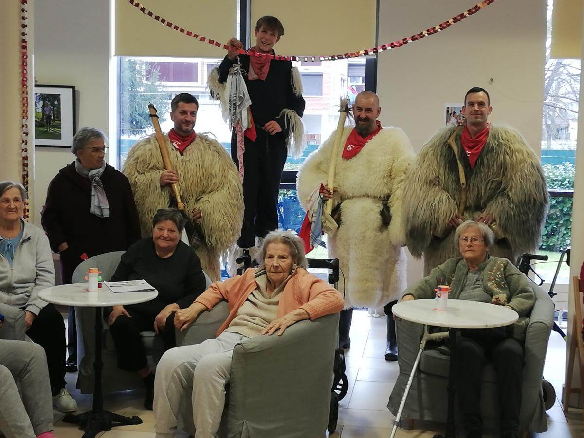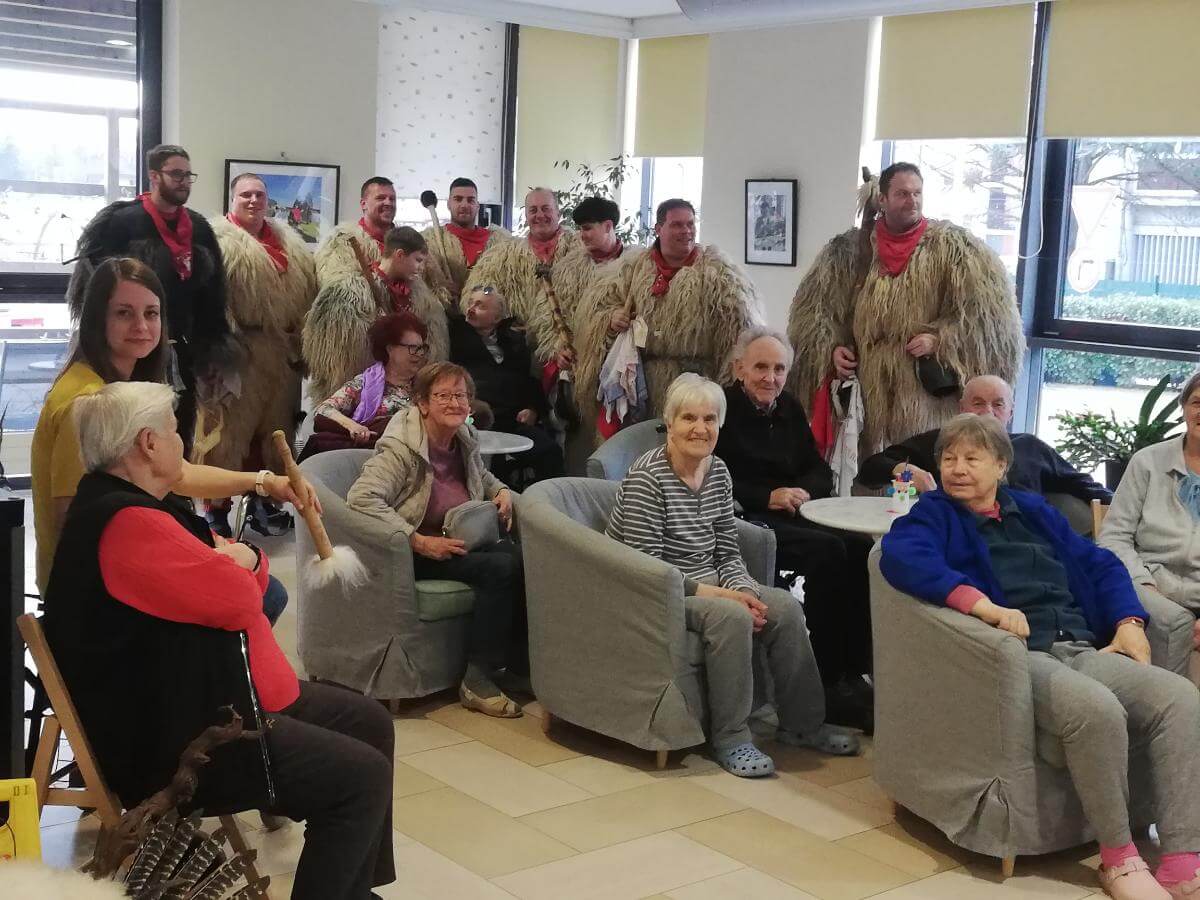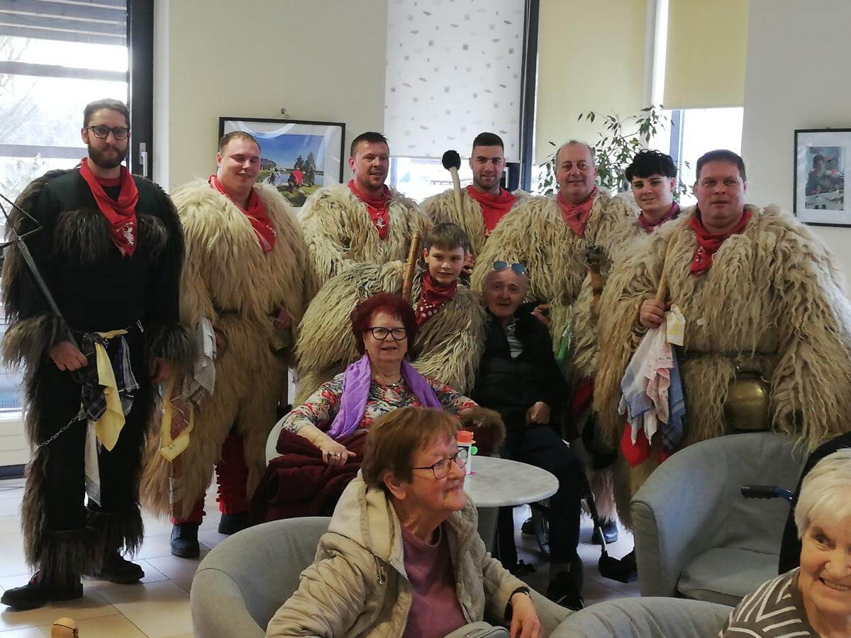 Danes je bilo pri nas še posebej veselo. Obiskali so nas koranti iz Hajdine in s svojim prihodom pričarali pravo pustno doživetje. Zvok zvoncev, mogočne oprave in pristna energija so napolnili naš dom s smehom, aplavzom in ganjenimi pogledi. Takšni trenutki povezujejo generacije in ohranjajo našo bogato tradicijo. Naši stanovalci so v obisku neizmerno uživali, marsikomu pa so se obudili tudi lepi spomini na pustne dni iz mladosti.