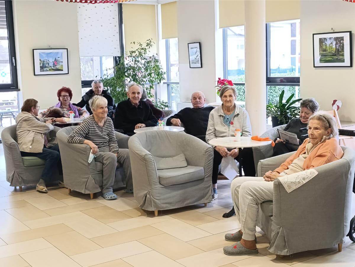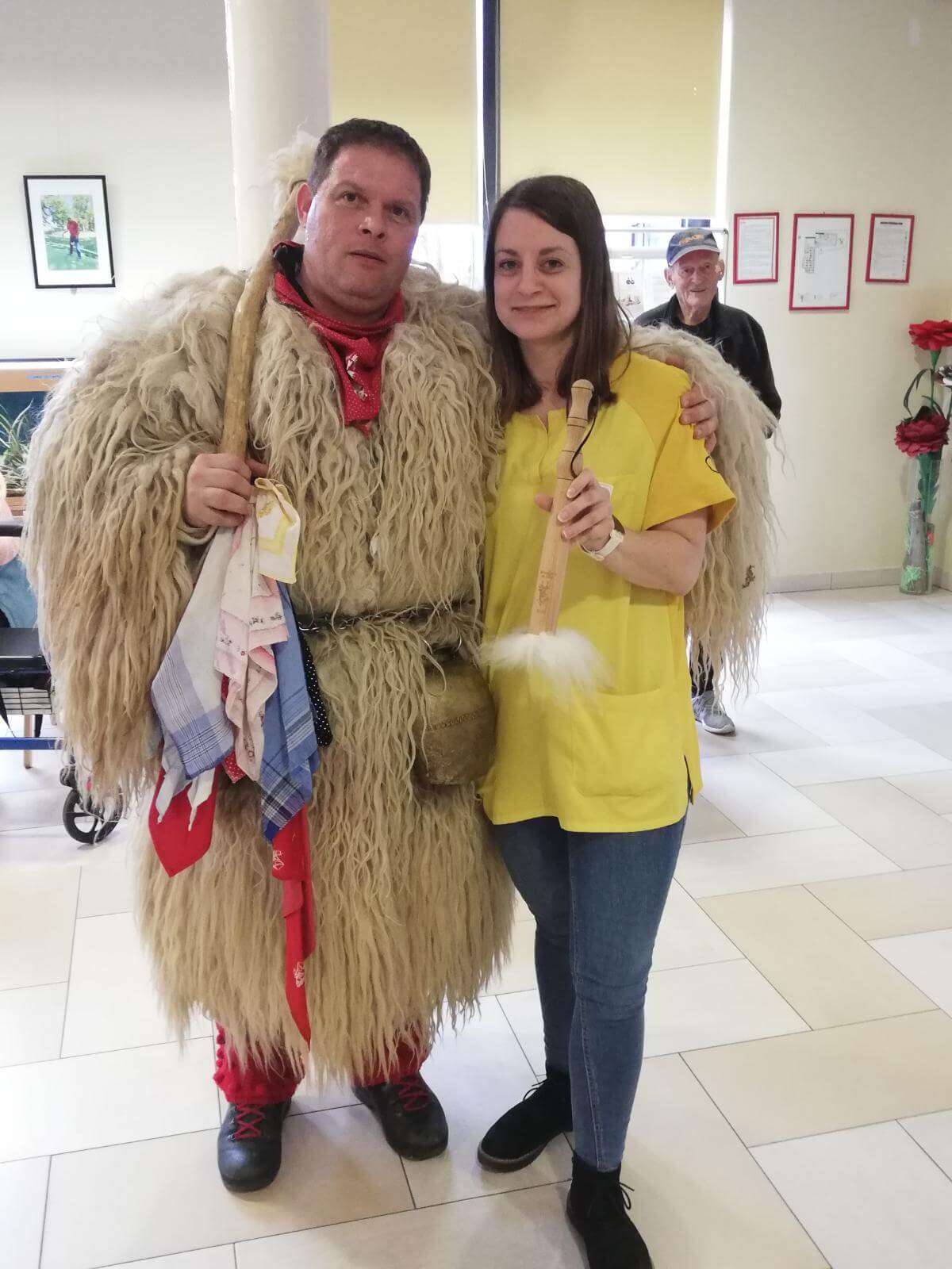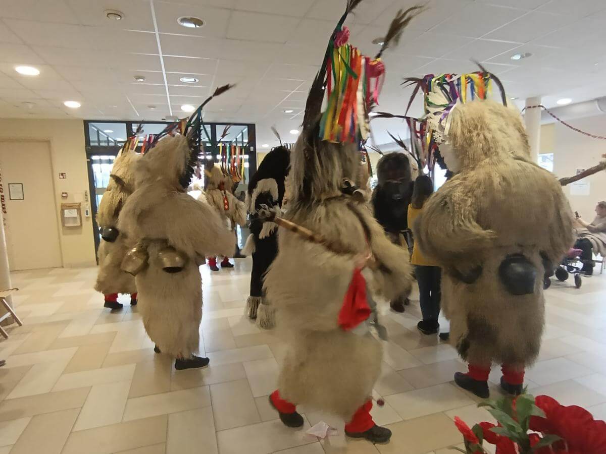 Danes je bilo pri nas še posebej veselo. Obiskali so nas koranti iz Hajdine in s svojim prihodom pričarali pravo pustno doživetje. Zvok zvoncev, mogočne oprave in pristna energija so napolnili naš dom s smehom, aplavzom in ganjenimi pogledi. Takšni trenutki povezujejo generacije in ohranjajo našo bogato tradicijo. Naši stanovalci so v obisku neizmerno uživali, marsikomu pa so se obudili tudi lepi spomini na pustne dni iz mladosti.