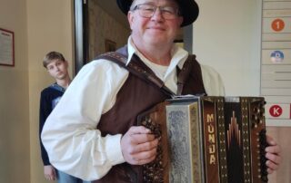 Gostili smo folklorno skupino iz Hrastja Mote in tri harmonikaše. »Špilali« so in plesali, na koncu pa, skupaj s stanovalci še zapeli. Popoldan je tako bil pester in vesel. [...]
